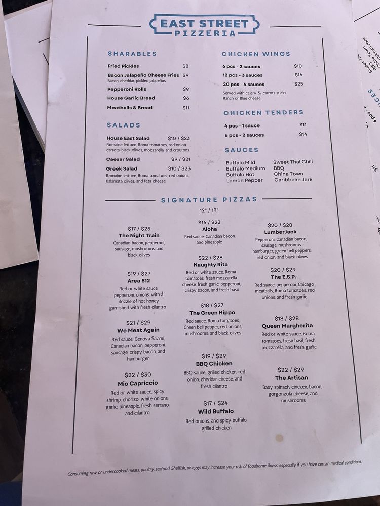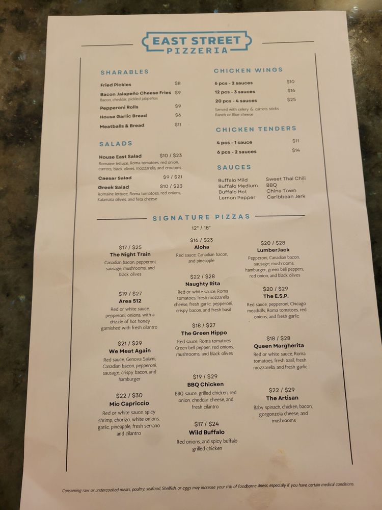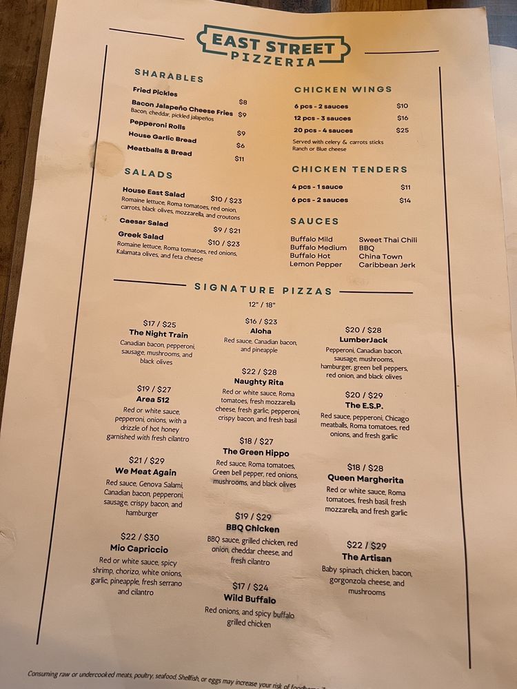 East St Pizzeria, located in Hutto, TX, is a charming pizza bar offering a variety of delicious options. Customers rave about their quality ingredients and friendly service. With a historic building setting, the venue brings warm vibes, perfect for a casual dining experience. The pizza rolls and wings are must-tries, according to patrons. While some areas like the ranch dressing may need improvement, the overall food quality shines through. The menu includes a range of beverages, from Mexicola to Mezcal, catering to different tastes. The freshly-made pizza dough and the suggested red and white sauce combinations add a unique touch to the dining experience. Whether you're a fan of classic cheese pizza or enjoy spicier options like the Mio Cappricio, East St Pizzeria has something for everyone. Don't miss out on a visit to this local gem for a satisfying meal with great ambiance.